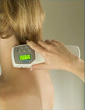 By Scanning and locate optimal treatment points - InterX technology uses its ability to identify changes in tissue properties to provide feedback to the therapist that is valuable in the identification of optimal treatment locations. The concentric electrodes are moved across the skin, without the need for gel of any kind, scanning for areas of low impedance. Feedback is provided in a number of ways, such as changes in the way the device moves across the skin, or through readings displayed on the screen that relate to the condition of the tissue immediately under the electrodes.